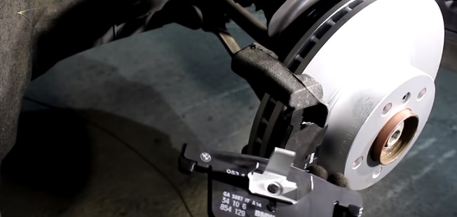 Видео замена передних тормозных колодок и дисков в БМВ Х3.