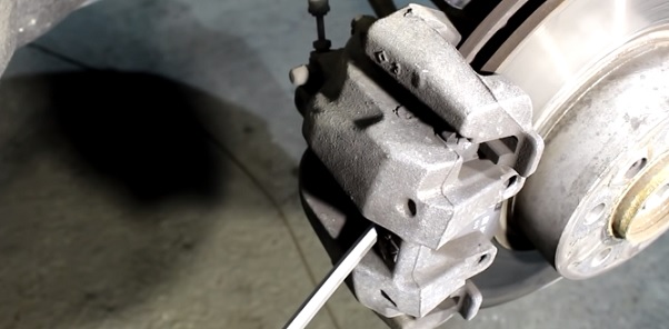 Отвёрткой отодвигаем палец, чтобы он отошёл от скобы суппорта: