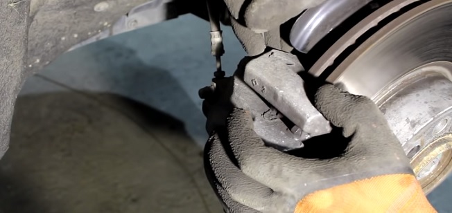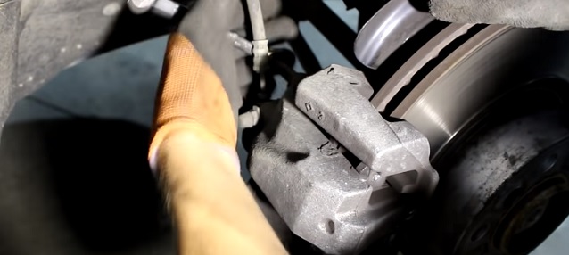 Вставляем её в суппорт, заводим предварительно почищенные направляющие, смазывать их не нужно. Ставим всё на место, собираем в обратной последовательности. Аналогичным образом меняем на другой стороне, там стоит ещё датчик износа тормозных колодок, в конце ролика показано где он находится. Перед тем как начать движение, несколько раз жмём до упора на педаль тормоза.