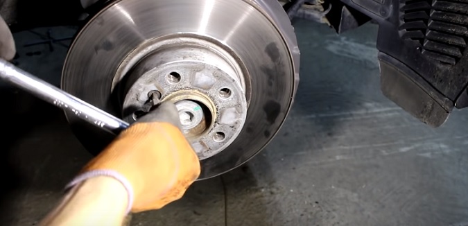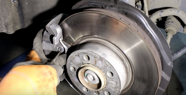 Скобу в обязательно порядке очищаем при помощи щётки с металлической щетиной, места соприкосновения колодок мажем специальной смазкой. Откручиваем крепления тормозного диска к ступице, делаем это при помощи шестигранника на 6: