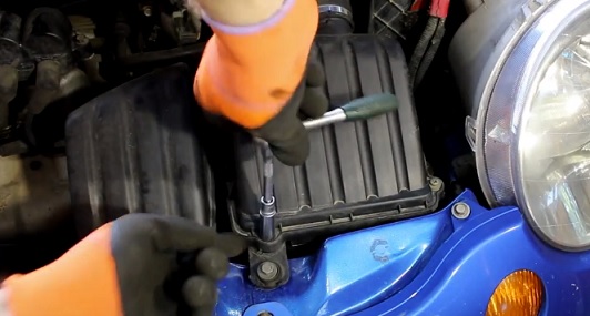 Откручиваем саморезы крепления, которые держат крышку корпуса воздушного фильтра. В нашем случае, саморез зачем то заменили болтом: