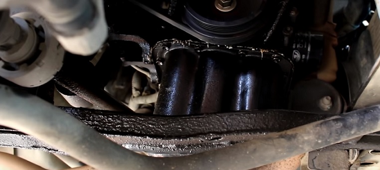 Если залезть под машину, можно увидеть обильные подтёки масла, вся защита картера в масле, крышка ремня ГРМ, раскидывает ещё на генератор.