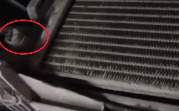 После этого снизу выводим вентилятор из пазов и снимаем его вместе с кожухом. Откручиваем нижнею пробку и сливаем антифриз из системы: