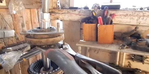 Головкой на 18 пытаемся открутить гайку, последнее мы делаем из-за того, что шестигранник критически заржавел и открутить стандартными средствами его не получается, возможно на вашем автомобиле будет по другому, но в большинстве случаев случается именно так. Если вы использовали как и мы зажимные пассатижи, то обработайте задиры на штоке напильником. В опорный подшипник при необходимости добавьте смазки.