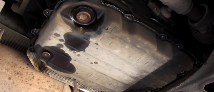 Снова открутим сливную пробку и сольём новое масло, которое перемешалось со старым. Откручиваем поддон АКПП: